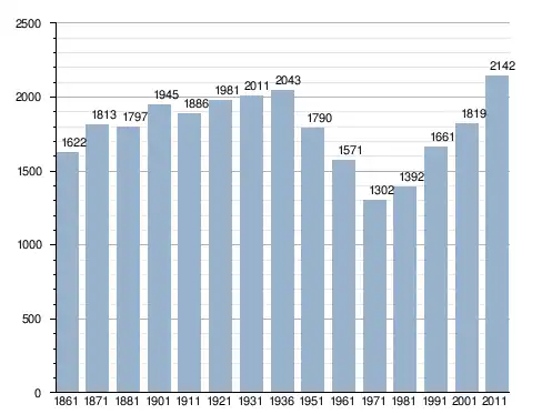 في سنة 1861 بلغ عدد السكان 1٬622 نسمة، وتطور العدد ليصل في سنة 2011 لـ 2٬142 نسمة.