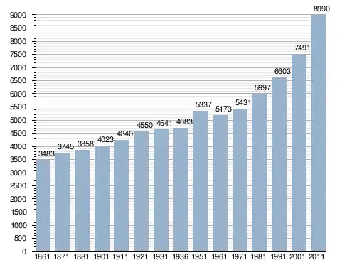 في سنة 1861 بلغ عدد السكان 3٬483 نسمة، وتطور العدد ليصل في سنة 2011 لـ 8٬990 نسمة.