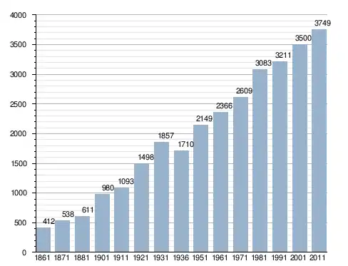 في سنة 1861 بلغ عدد السكان 412 نسمة، وتطور العدد ليصل في سنة 2011 لـ 3٬749 نسمة.