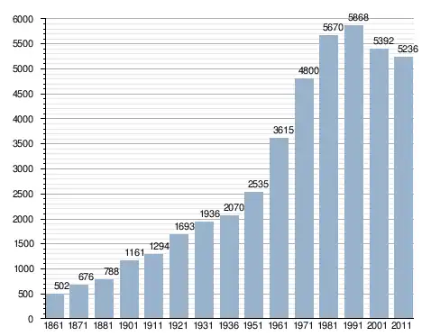 في سنة 1861 بلغ عدد السكان 502 نسمة، وتطور العدد ليصل في سنة 2011 لـ 5٬236 نسمة.