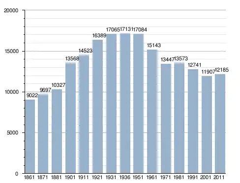 في سنة 1861 بلغ عدد السكان 9٬022 نسمة، وتطور العدد ليصل في سنة 2011 لـ 12٬185 نسمة.