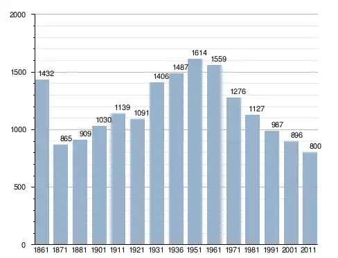 في سنة 1861 بلغ عدد السكان 1٬432 نسمة، وتطور العدد ليصل في سنة 2011 لـ 800 نسمة.