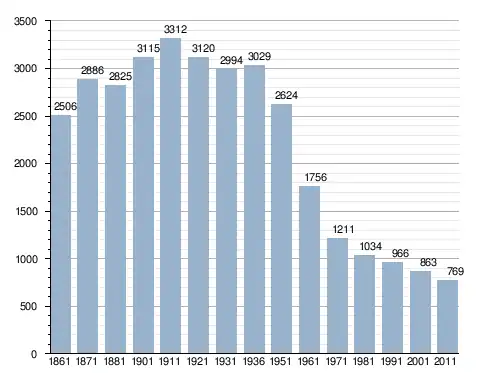 في سنة 1861 بلغ عدد السكان 2٬506 نسمة، وتطور العدد ليصل في سنة 2011 لـ 769 نسمة.