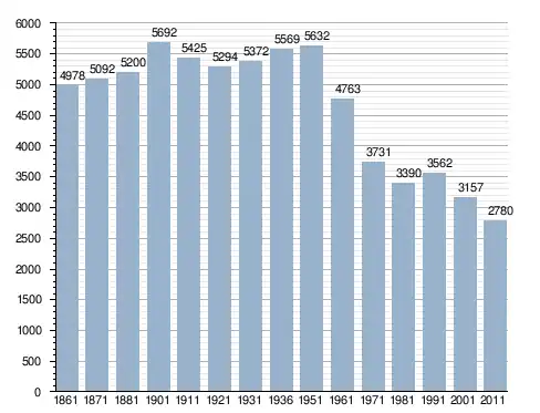 في سنة 1861 بلغ عدد السكان 4٬978 نسمة، وتطور العدد ليصل في سنة 2011 لـ 2٬780 نسمة.