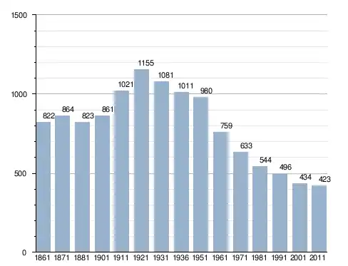 في سنة 1861 بلغ عدد السكان 822 نسمة، وتطور العدد ليصل في سنة 2011 لـ 423 نسمة.