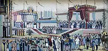 واصطف الأسطول المصري في ميناء بورسعيد لحفظ النظام وزيادة البهجة، وأقيمت ثلاث منصات مكسوة بالحرير والديباج خصصت الكبرى للملوك والأمراء وكبار المدعوين والثانية إلى اليمين لرجال الدين الإسلامي والثالثة إلى اليسار لرجال الدين المسيحي.[16]:44:47