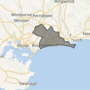 ![]() موقع سلطة بورنماوث الوحدوية السابقة (أحمر غامق) داخل بورنماوث وكريستشيرش وبول (أحمر) | ||