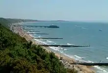 نجت المدينة من القصف العنيف خلال الحرب العالمية الثانية، لكن الواجهة البحرية لحقت بها أضرار جسيمة عندما تم تحصينها ضد الغزو، [40] حيث تمت إزالة أعمدة الإنارة والمقاعد المصنوعة من الحديد الزهر على طول الجبهة وصهرتها للذخيرة، كما كانت الكثير من البنية الفوقية من أرصفة بورنماوث وبوسكومب قبل اختراقها لمنع استخدامها من قبل سفن العدو. ووضعت كميات كبيرة من الأسلاك والمضادة للدبابات العقبات الشائكة على طول الشاطئ، والألغام على سفح تشاينا، واستغرق عامين لإزالتها عندما تحقق السلام في نهاية المطاف.[41]