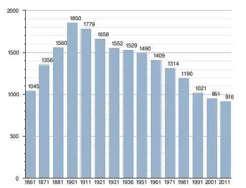 في سنة 1861 بلغ عدد السكان 1٬045 نسمة، وتطور العدد ليصل في سنة 2011 لـ 916 نسمة.