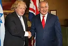 ألكساندر بوريس دي بيفل جونسون (مواليد 19 يونيو 1964 في نيويورك) (بالإنجليزية: Alexander Boris de Pfeffel Johnson) معروف باسم بوريس جونسون، هو سياسي بريطاني وروائي وصحافي ومؤرخ[26]، ورئيس الوزراء في المملكة المتحدة. وهو زعيم الحزب المحافظ منذ 23 يوليو 2019.[27] كان عضوًا في البرلمان عن أوكسبريدج وساوث روزليب (دائرة برلمان المملكة المتحدة) منذ عام 2015، وكان النائب عن منطقة هينلي في الفترة من 2001 إلى 2008. وكان أيضا عمدة لمدينة لندن من عام 2008 إلى عام 2016، وشغل منصب وزير الخارجية من عام 2016 إلى عام 2018. يعرّف جونسون بأنه من تيار يمين الوسط صاحب تيار الأمة الواحدة في حزب المحافظين وارتبط بالسياسات الليبرالية الاقتصادية والاجتماعية.