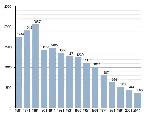 في سنة 1861 بلغ عدد السكان 1٬744 نسمة، وتطور العدد ليصل في سنة 2011 لـ 368 نسمة.
