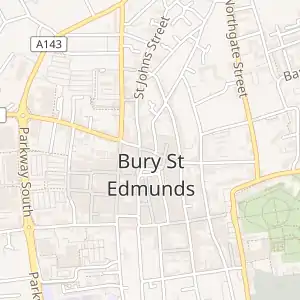 - "صفحة بوري سانت ادموندز في خريطة الشارع المفتوحة". OpenStreetMap. اطلع عليه بتاريخ 2 مارس 2021. الوسيط