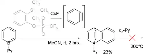 يتفاعل بور البنزين مع الألكاينات الفقيرة بالإلكترونات حسب تفاعل ديلز-ألدر ليشكل مركبات حاوية على البورون تشبه مركبات باريلين Barrelene، تسمى بورباريلين كما في التفاعل أدناه:[5]
