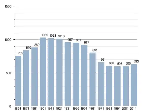 في سنة 1861 بلغ عدد السكان 755 نسمة، وتطور العدد ليصل في سنة 2011 لـ 633 نسمة.