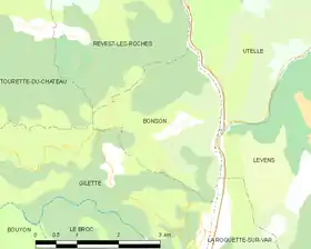 بونسون، الألب الجبلية (بالفرنسية: Bonson, Alpes-Maritimes) هي بلدية فرنسية تقع في إقليم الألب البحرية من منطقة بروفنس ألب كوت دازور في جنوب شرق فرنسا. تبلغ مساحة هذه المدينة 6.72 (كم²)، وترتفع عن سطح البحر 400 م، يبلغ عدد سكانها 677 نسمة حسب إحصاء المعهد الوطني للإحصاء والدراسات الاقتصادية سنة 2009 م. وترأس Jean-Marie Audoli البلدية خلال فترة (2008-2014).[6]