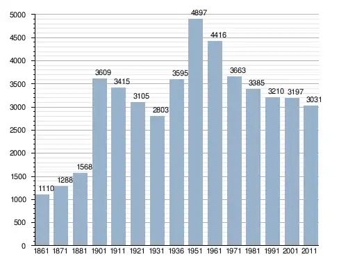 في سنة 1861 بلغ عدد السكان 1٬110 نسمة، وتطور العدد ليصل في سنة 2011 لـ 3٬031 نسمة.