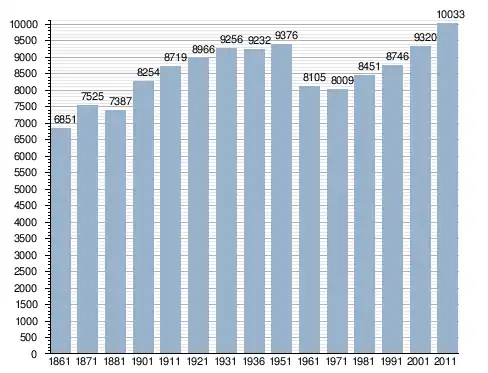 في سنة 1861 بلغ عدد السكان 6٬851 نسمة، وتطور العدد ليصل في سنة 2011 لـ 10٬033 نسمة.