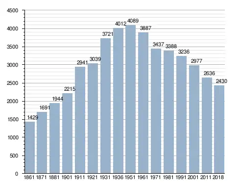 في سنة 1861 بلغ عدد السكان 1٬429 نسمة، وتطور العدد ليصل في سنة 2018 لـ 2٬430 نسمة.