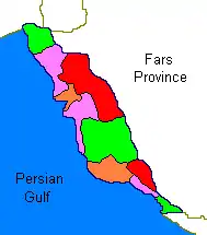 ![]() خريطة محافظة بوشهر مع مقاطعاتها | |
