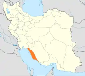![]() خريطة إيران تبيّن محافظة بوشهر موقع بوشهر ضمن إيران | |