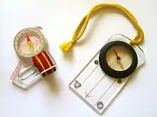 |CitationClass=تم تجاهله (مساعدة) - الجيش الامريكى، قراءة الخرائط والملاحة البرية، وزير الخارجية 21-26، المقر، وقسم من الجيش، واشنطن العاصمة (7 مايو 1993)، الفصل. 11، ص. يمكن 1-3 : أي 'العائم بطاقة' نوع البوصلة مع المسطرة أو محور محور تستعمل لقراءة الخريطة التي تحمل توجيه الخريطة إلى الشمال المغناطيسي باستخدام السمت تعادل المغناطيسي، ولكن العملية هي أبسط كثيرا مع منقلة البوصلة.