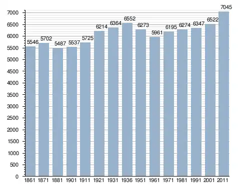 في سنة 1861 بلغ عدد السكان 5٬546 نسمة، وتطور العدد ليصل في سنة 2011 لـ 7٬045 نسمة.