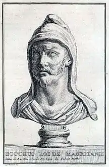 واحدة أو أكثر من الجمل السابقة تتضمن نصاً من منشور أصبح الآن في الملكية العامة: هيو تشيشولم, المحرر (1911). . موسوعة بريتانيكا. 4 (الطبعة الحادية عشر). مطبعة جامعة كامبريدج. صفحة 106. الوسيط |CitationClass=تم تجاهله (مساعدة)CS1 maint: ref=harv (link) This cites: Sallust, Jugartha, 80-120 Plutarch, Marius, 8-32, Sulla, 3 A. H. J. Greenidge, History of Rome (London, 1904) - Camps, Gabriel (1991). "Bocchus". الموسوعة البربرية. 10 | Beni Isguen – Bouzeis. Aix-en-Provence: Edisud. صفحات 1544–1546. مؤرشف من الأصل في 29 مايو 2019. الوسيط