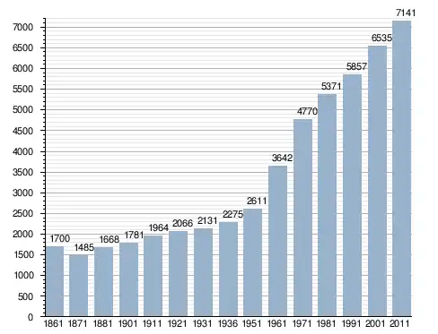 في سنة 1861 بلغ عدد السكان 1٬700 نسمة، وتطور العدد ليصل في سنة 2011 لـ 7٬141 نسمة.