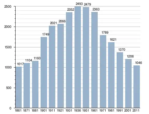 في سنة 1861 بلغ عدد السكان 1٬017 نسمة، وتطور العدد ليصل في سنة 2011 لـ 1٬046 نسمة.