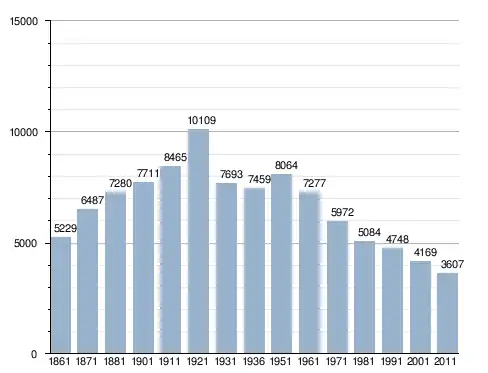في سنة 1861 بلغ عدد السكان 5٬229 نسمة، وتطور العدد ليصل في سنة 2011 لـ 3٬607 نسمة.