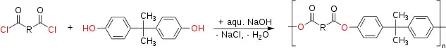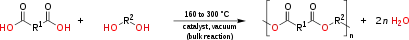 (n+1) R(OH)2 + n R´(COOH)2 → HO[ROOCR´COO]nROH + 2n H2O.