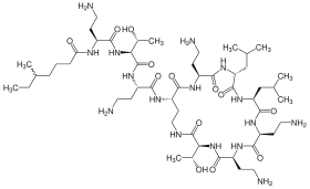 البوليميكسينات هي مجموعة من عديدات البيبتيد اللاريبوزية الدورية (NRPs) التي يتم تحليلها الحيوي من قِبَل البكتيريا التي تنتمي إلى جنس العصويات. وتتكون البوليميكسينات من بقايا 10 أحماض أمينية، ستة منها تتكون من L-α,γ - حمض البيوتيرك ثنائي الأمين (L-DAB). وتسبب بقايا حمض البيوتيرك ثنائي الأمين في أن يكون للبوليميكسين مجموعات متعددة موجبة الشحنة في درجة الحموضة الفسيولوجية. وتشكل بقايا الأحماض الأمينية السبعة المكون الدوري الرئيسي، في حين أن الثلاثة الباقية تمتد من أحد البقايا الحلقية كسلسلة خطية تنتهي إما بحمض 6 ميثيل أوكتانويك أو حمض 6-ميثيل هيبتانيك في الطرف ن. وخلال التدوير، يرتبط المتبقي 10 بجسر المتبقي 4.[11] وتكون بقايا الأحماض الأمينية ومونومرات DAB بشكل عام موجودة في التكوين L