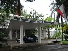 على الرغم من المجمع المحلي والحكومة، بولينيزيا الفرنسية ليست في حالة التكوين الحر مع فرنسا، على عكس جزر كوك مع نيوزيلندا أو ولايات ميكرونيزيا الموحدة مع الولايات المتحدة. كمجموعة ما وراء البحار التابعة لفرنسا، الحكومة المحلية ليس لديها اختصاص في القضاء والتعليم والأمن والدفاع، ويتم تقديمها وادارتها مباشرة من قبل الدولة الفرنسية، وقوات الدرك والجيش الفرنسي. أعلى ممثل للدولة في الإقليم هو المفوض السامي للجمهورية في بولينيزيا الفرنسية (باللغة الفرنسية : Haut commissaire de la République).