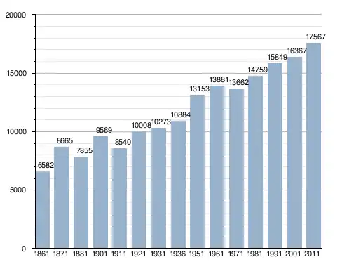 في سنة 1861 بلغ عدد السكان 6٬582 نسمة، وتطور العدد ليصل في سنة 2011 لـ 17٬567 نسمة.
