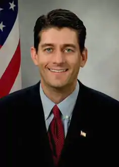 بول ريان (بالإنجليزية: Paul Ryan)، سياسي أمريكي والرئيس السابق لمجلس النواب الأمريكي ترأس لجنة الميزانية ولجنة الطرق والوسائل بمجلس النواب الأمريكي في الفترة بين 2011 -2015. كما أنه كان مرشح الحزب الجمهوري لمنصب نائب رئيس الولايات المتحدة الأمريكية في انتخابات 2012 مع شريكه ميت رومني مرشح الحزب لمنصب الرئيس وقتها.[4]