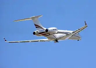 و طائرة غلوبال إكسبريس مزودة بمحركين نفاثين من نوع رولز رويس توربو Rolls-Royce BR710 .