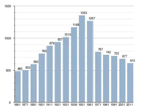في سنة 1861 بلغ عدد السكان 485 نسمة، وتطور العدد ليصل في سنة 2011 لـ 610 نسمة.