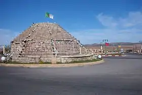 ![]() مفترق الطرق الرئيسي في البلدية يتوسطه مبنى شبيه بالضريح النوميدي امدغاسن | |
