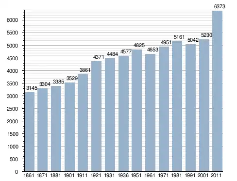 في سنة 1861 بلغ عدد السكان 3٬145 نسمة، وتطور العدد ليصل في سنة 2011 لـ 6٬373 نسمة.