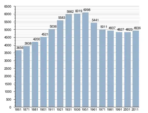 في سنة 1861 بلغ عدد السكان 3٬656 نسمة، وتطور العدد ليصل في سنة 2011 لـ 4٬936 نسمة.