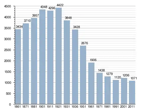 في سنة 1861 بلغ عدد السكان 3٬434 نسمة، وتطور العدد ليصل في سنة 2011 لـ 1٬071 نسمة.