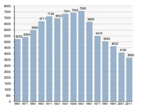 في سنة 1861 بلغ عدد السكان 5٬232 نسمة، وتطور العدد ليصل في سنة 2011 لـ 3٬669 نسمة.
