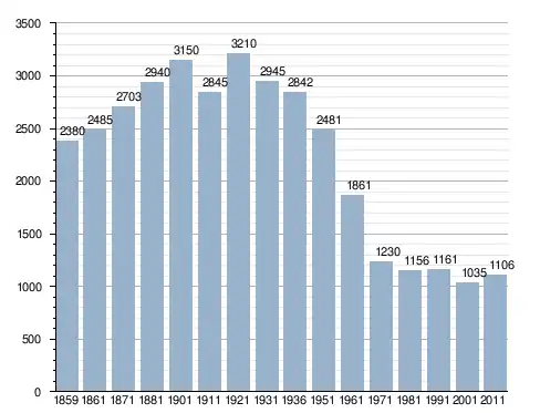 في سنة 1859 بلغ عدد السكان 2٬380 نسمة، وتطور العدد ليصل في سنة 2011 لـ 1٬106 نسمة.