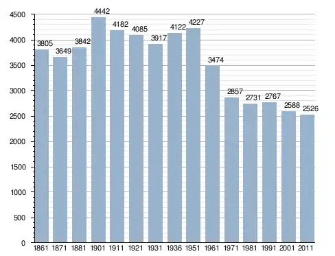 في سنة 1861 بلغ عدد السكان 3٬805 نسمة، وتطور العدد ليصل في سنة 2011 لـ 2٬526 نسمة.