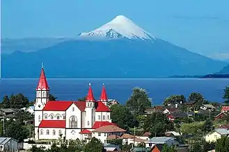 ![]() View of Puerto Varas with بركان أوزورنو and بحيرة يانكيوي in the background. | ||||||