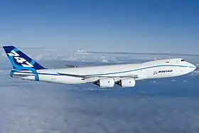 بوينغ 747-8 هي طائرة بدن واسع طُورت من طرف شركة بوينغ لصناعة الطائرات ، والتي تعتبر النسخة الرابعة في جيل طائرات البوينغ 747 ، يمتاز هذا الطراز ببدّن مَطول عن سابقه وأجنحة بتصميم جديد وتطوير الكفاءة ، حيث تعتبر 747-8 الأوسع بين طائرات 747 وأكبر طائرة تجارية بنيت في الولايات المتحدة الأمريكية والأطول في العالم .[1] أُعلن عنها رسميا عام 2005 . وتعتبر تلك النسخة تطورا جذريا من النسخة بوينغ 747-400. وزن الإقلاع الأقصى (MTOW) يكون 440,000 ك.غ. وبذلك تعتبر 747-8 أثقل طائرة إنتاج أمريكي سواء على الصعيد المدني أو العسكري.[2] هذه الطائرة صممت لتنافس الإيرباص 380.