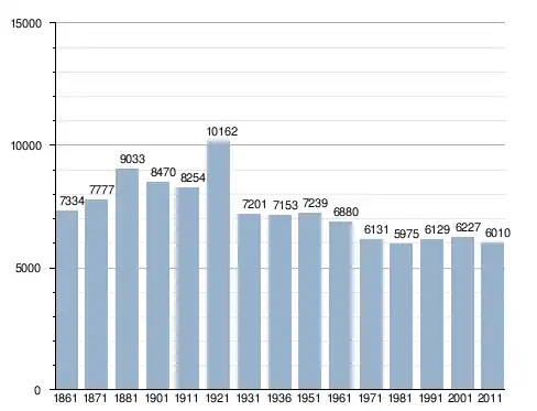 في سنة 1861 بلغ عدد السكان 7٬334 نسمة، وتطور العدد ليصل في سنة 2011 لـ 6٬010 نسمة.