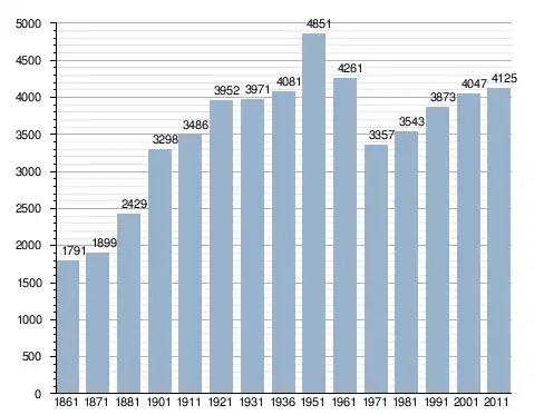في سنة 1861 بلغ عدد السكان 1٬791 نسمة، وتطور العدد ليصل في سنة 2011 لـ 4٬125 نسمة.