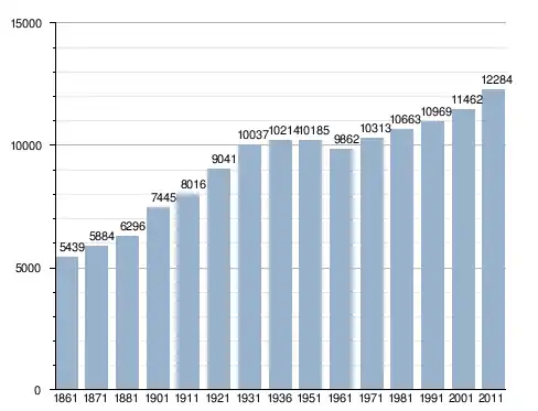 في سنة 1861 بلغ عدد السكان 5٬439 نسمة، وتطور العدد ليصل في سنة 2011 لـ 12٬284 نسمة.