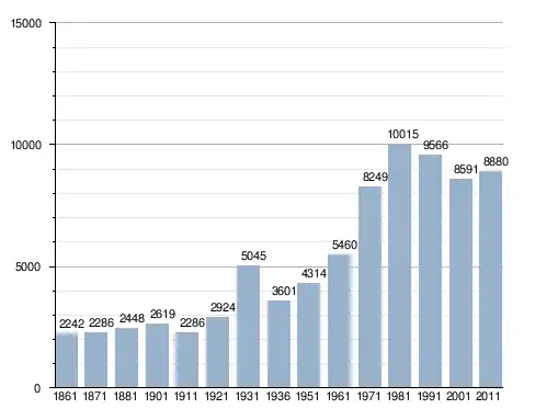 في سنة 1861 بلغ عدد السكان 2٬242 نسمة، وتطور العدد ليصل في سنة 2011 لـ 8٬880 نسمة.